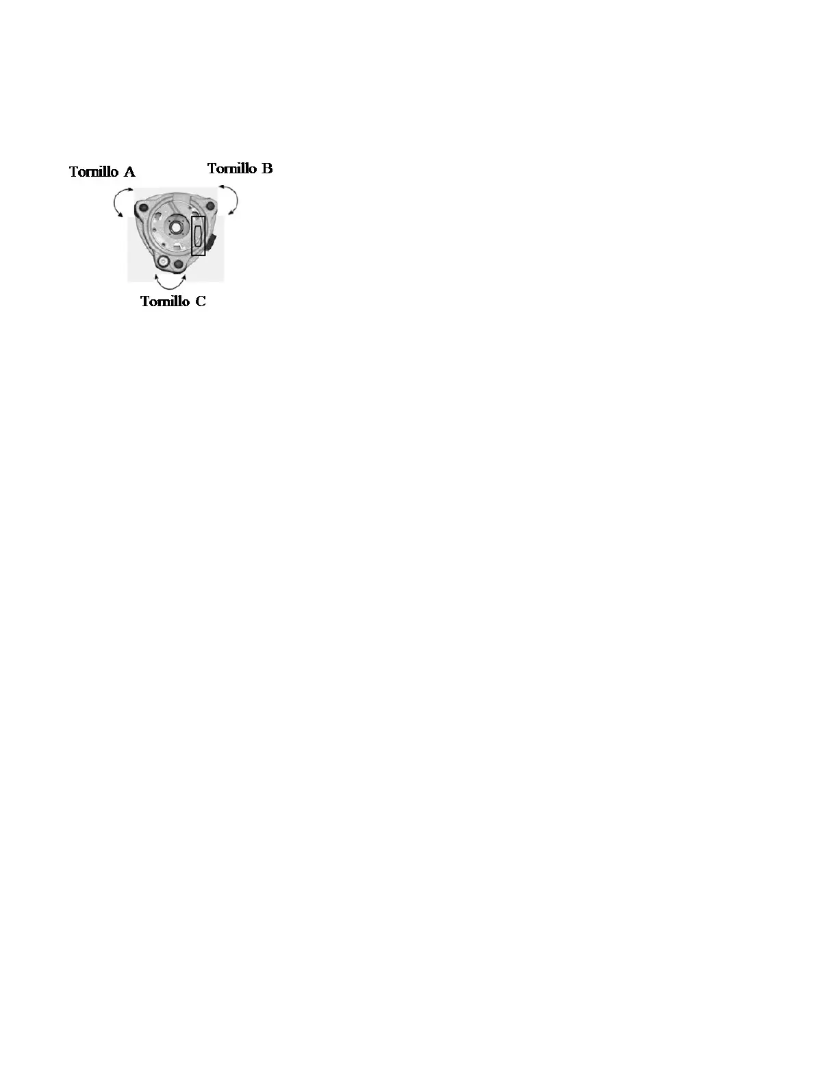 Adjust screw C, till the bubble in the center Ajuste el tornillo