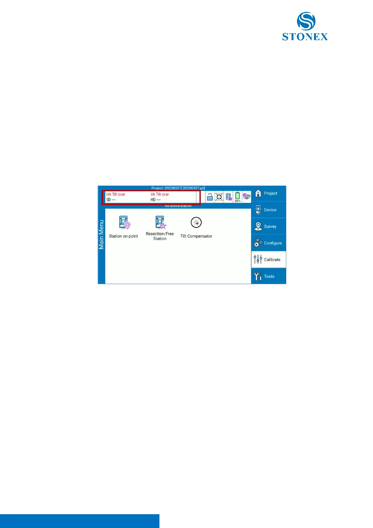 Clicking on Tilt Compensator, it is possible to activate/deactivate the electronic compensator. This