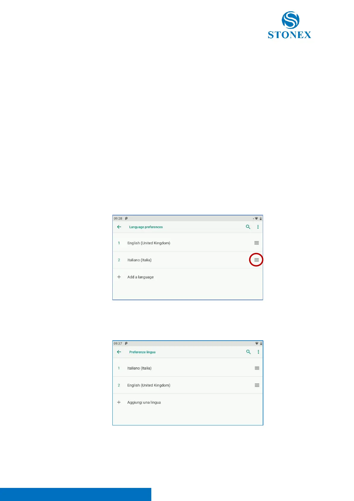 As visible in the image above, the device language was changing in Italian simply moving Italian