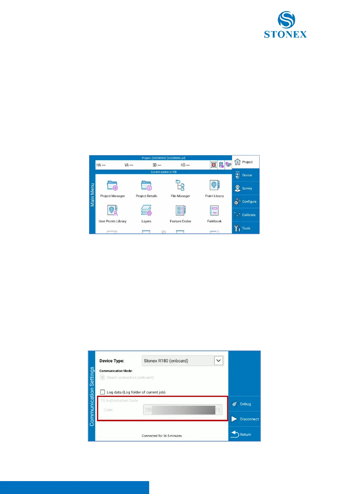 Note. During Stonex checks and tests before the instrument shipment, we insert the TS authorization