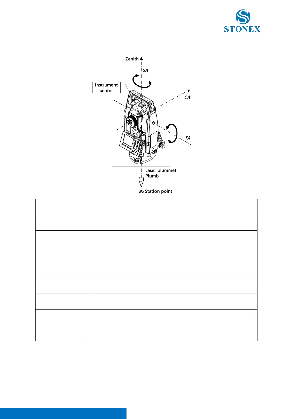 • The SA, the laser plummet axis, and the zenith/plumbline are co-linear and pass through the current