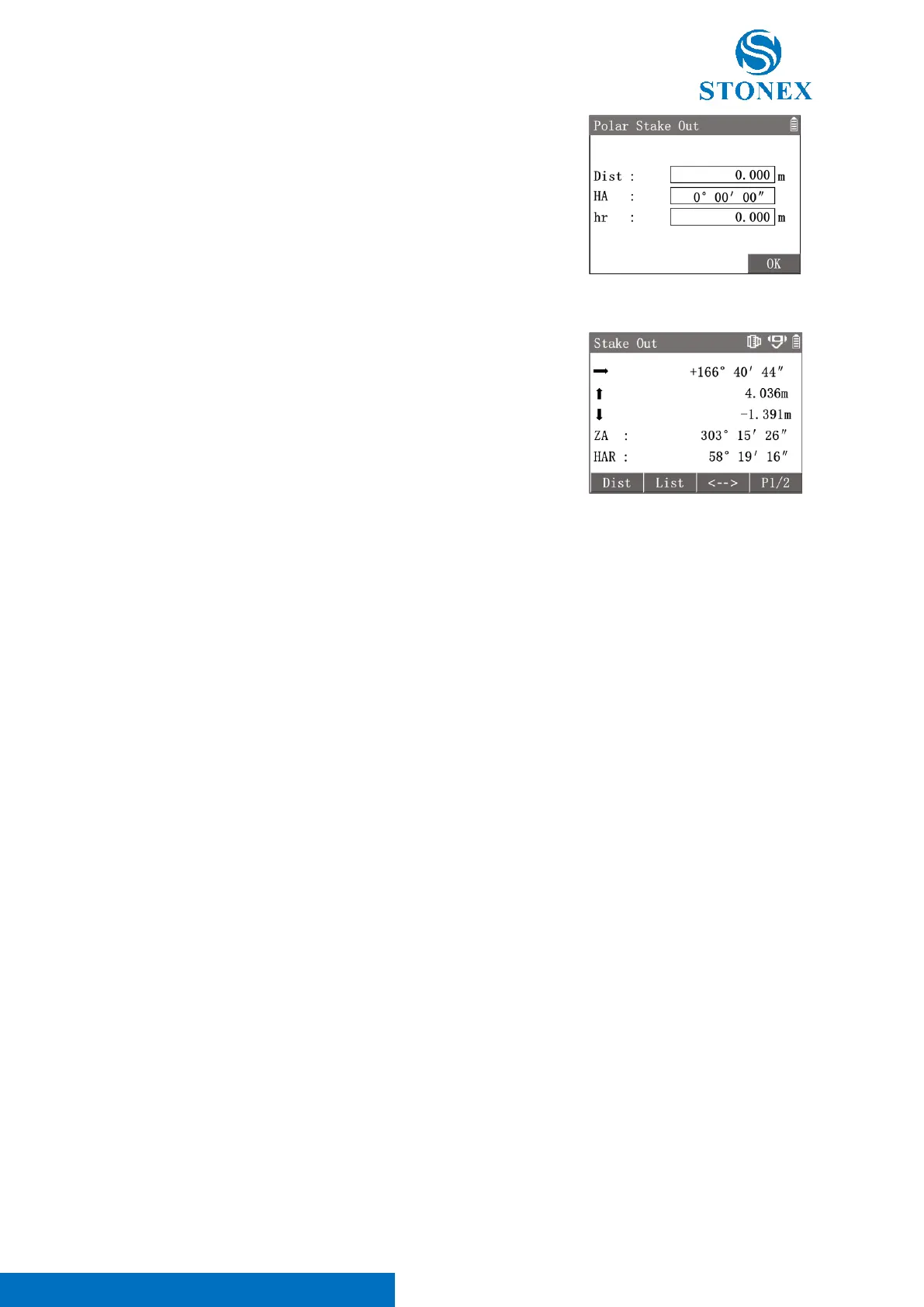 press [F4]【OK】to enter {Stake Out} guidance interface to perform stake