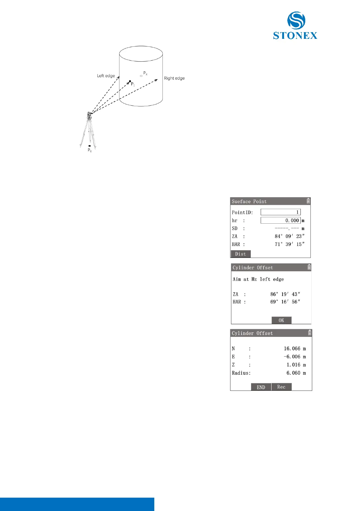 2. Aim at a surface point of the cylinder and press [F1]【Dist】to