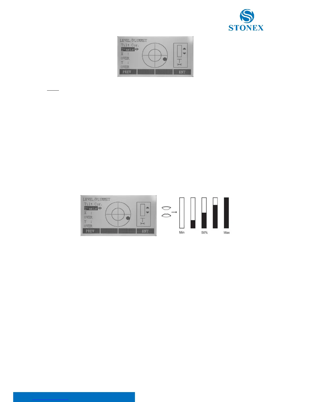 electronic level, the laser plummet adjusting bar will display. With pressing ▲/▼ keys the laser lightness can be