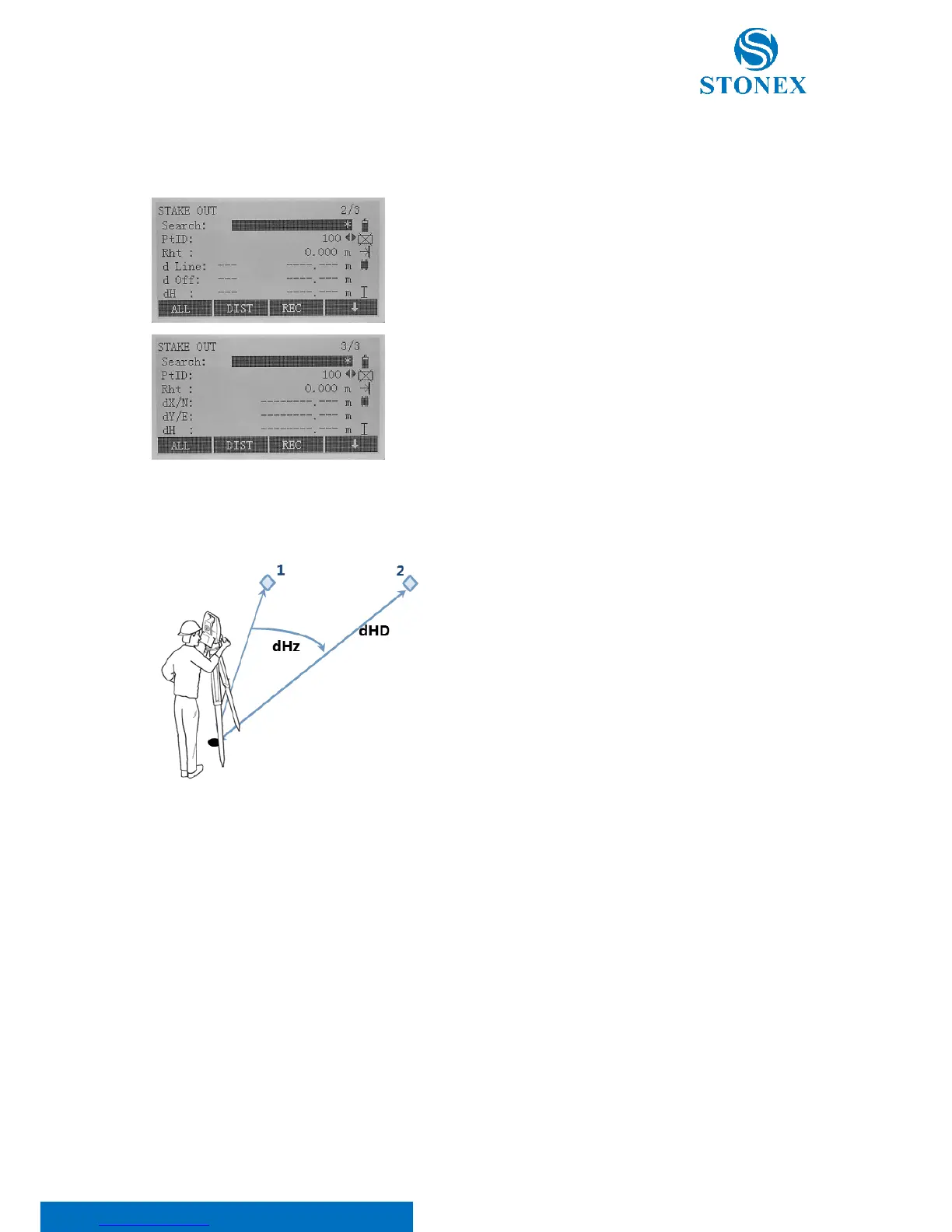 Press F1[ALL] or F2[DIST] to start measuring. Near the offsets, arrows (↓, ↑, ←, →) indicate the direction, in which
