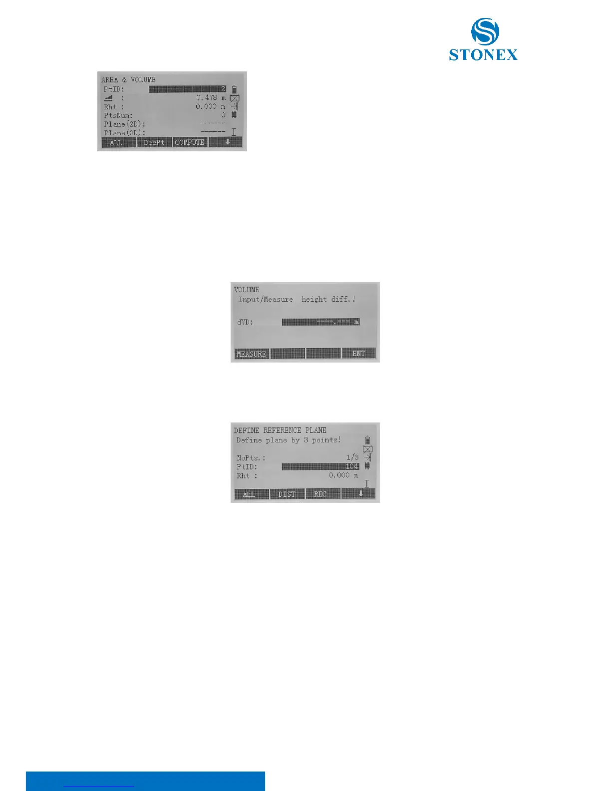 • [Def. 3D]: Define the sloped reference plane by measuring ([ALL] or [DIST]+[REC] softkeys), selecting
