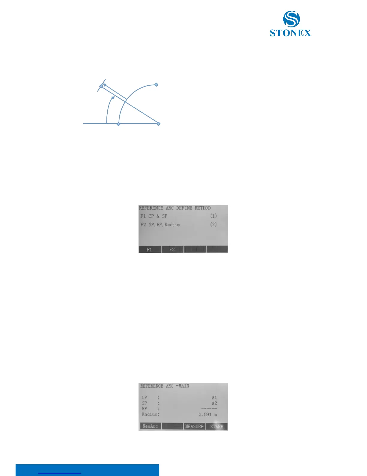 This application permits the user to define a Reference Arc and then measure or stake out in relation to the arc.