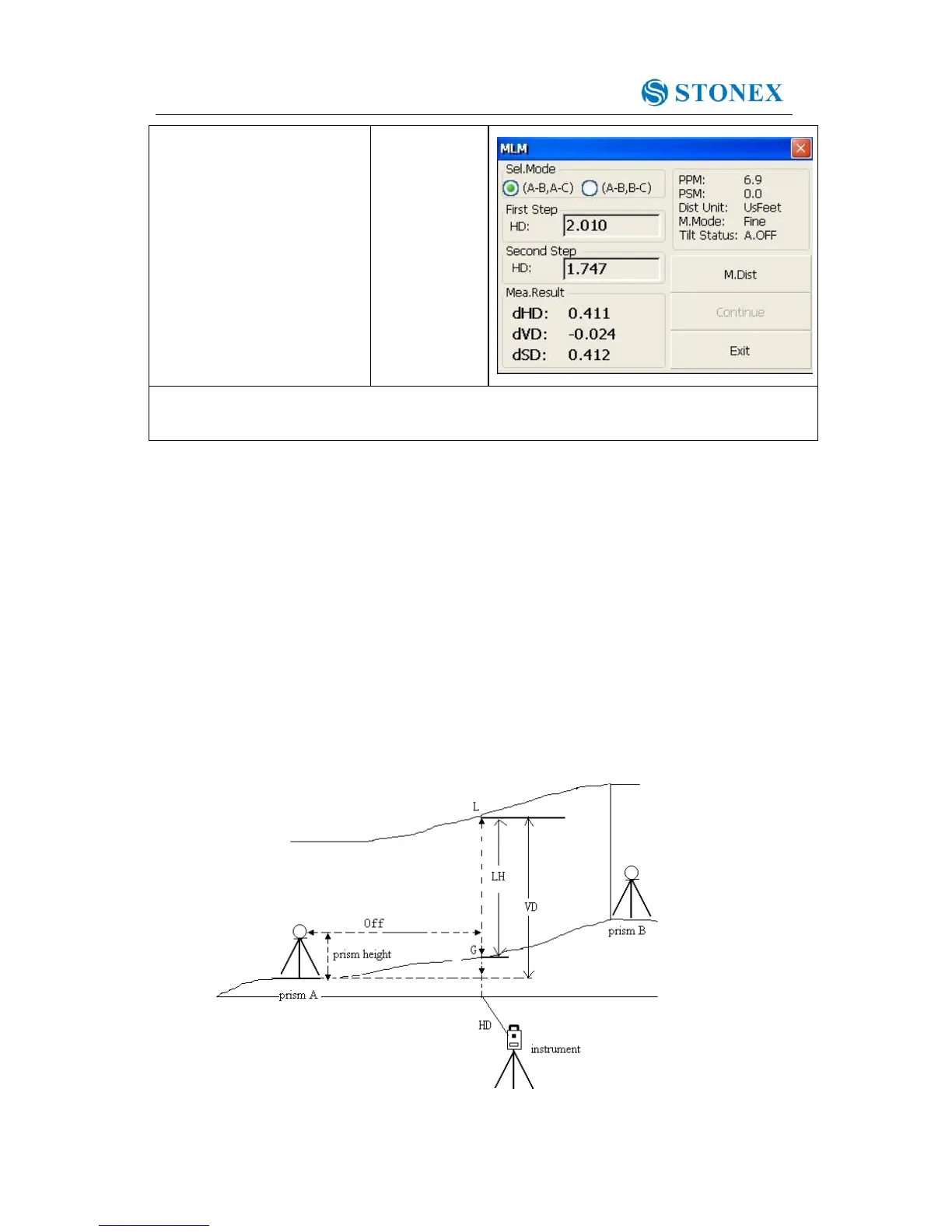 distance under line. After measuring horizontal distances from instrument to prisms A/B
