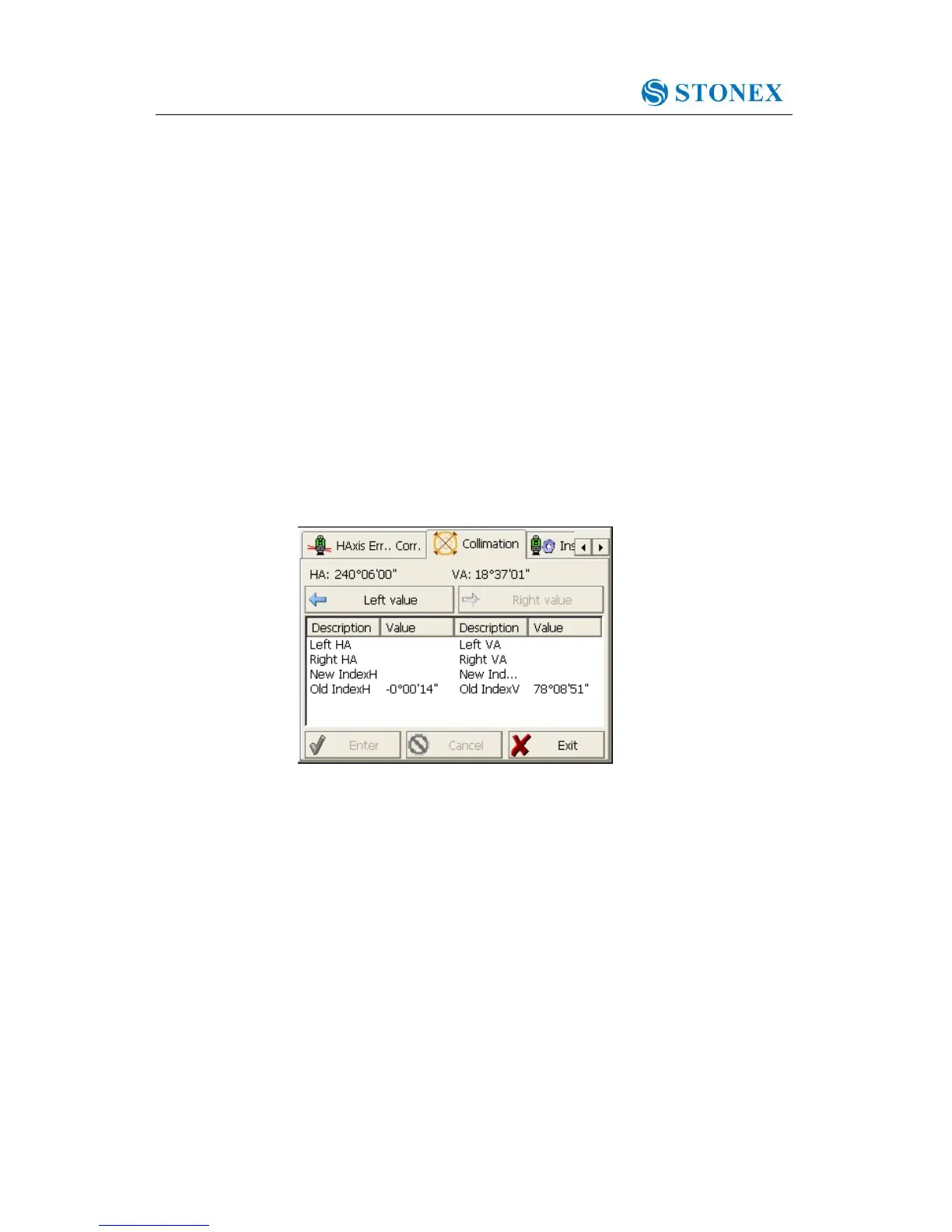 Collimation displays, tap it to display collimation error and vertical index error setting