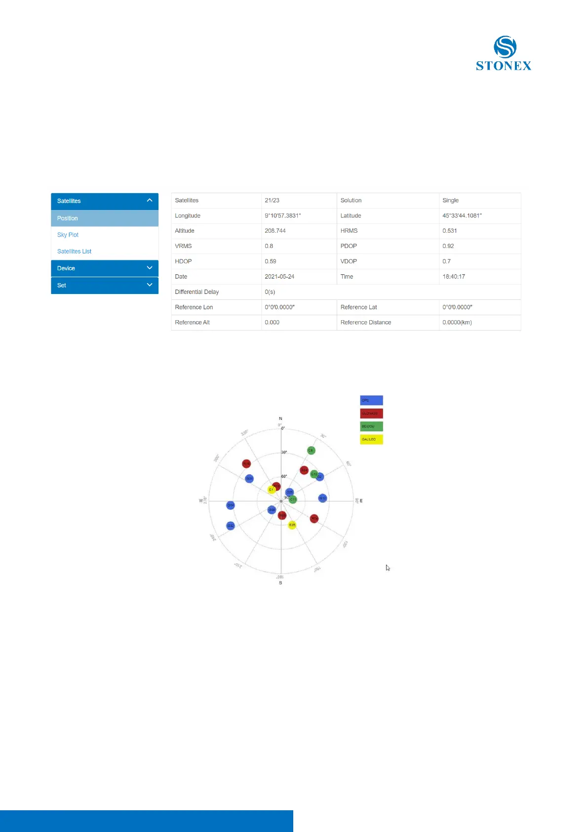 STONEX S580 - Web Interface; Satellites Section
