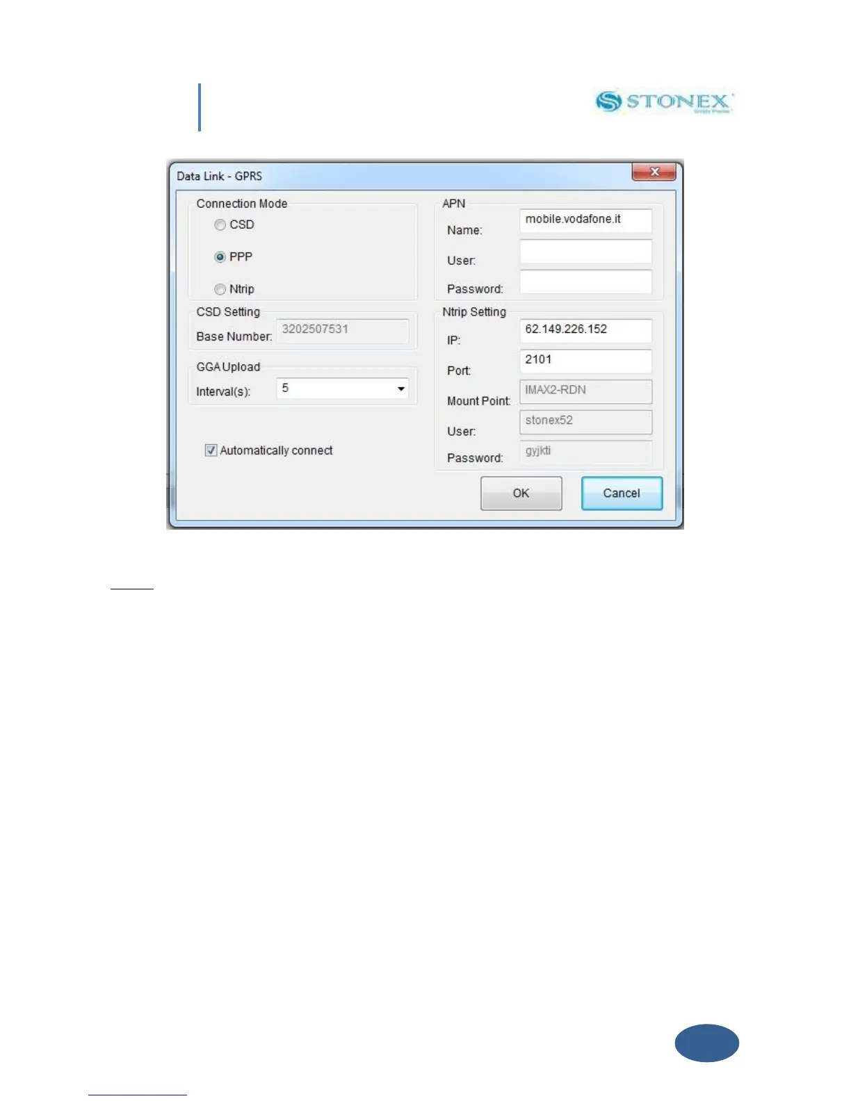 NTRIP protocol by internet GPRS connection. If you select this option, you have to insert the