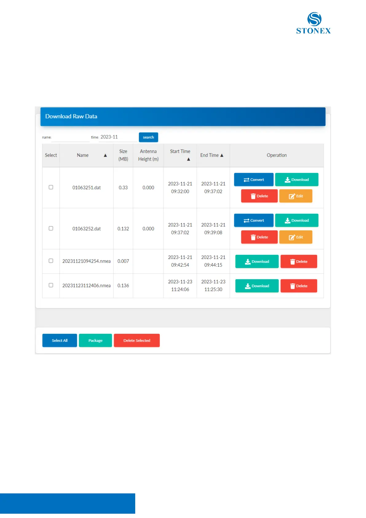 From this page, it’s possible to download and delete the log files (Raw data, Rinex, NMEA, selftest report),