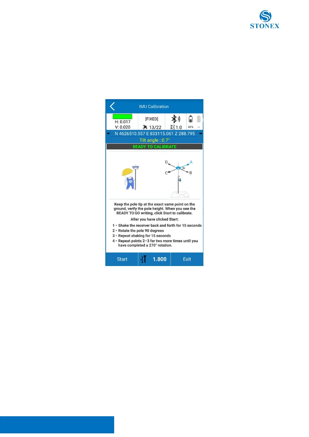should reach at least 45° but not more than 60° from the vertical position, the guided procedure on Stonex