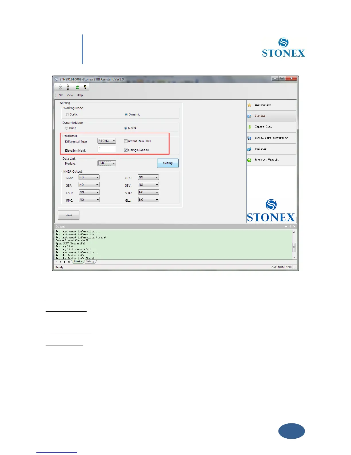 Differential type: To select the format of the differential corrections transmitted or received.