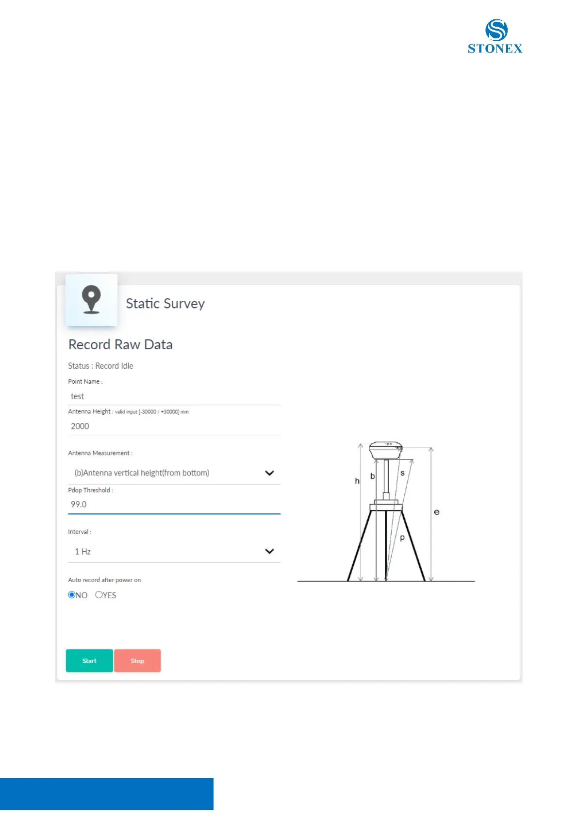 Enabling “auto record after power on” will cause the receiver to start to record as soon as the PDOP value is