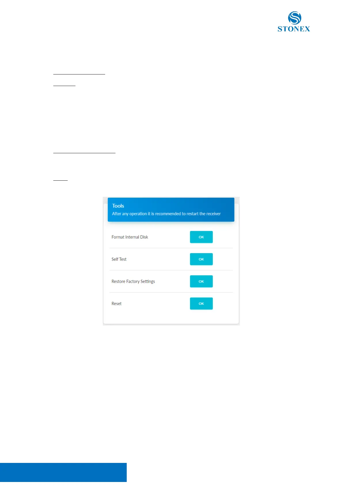 • Format Internal Disk: remove all the log files saved in the internal memory
