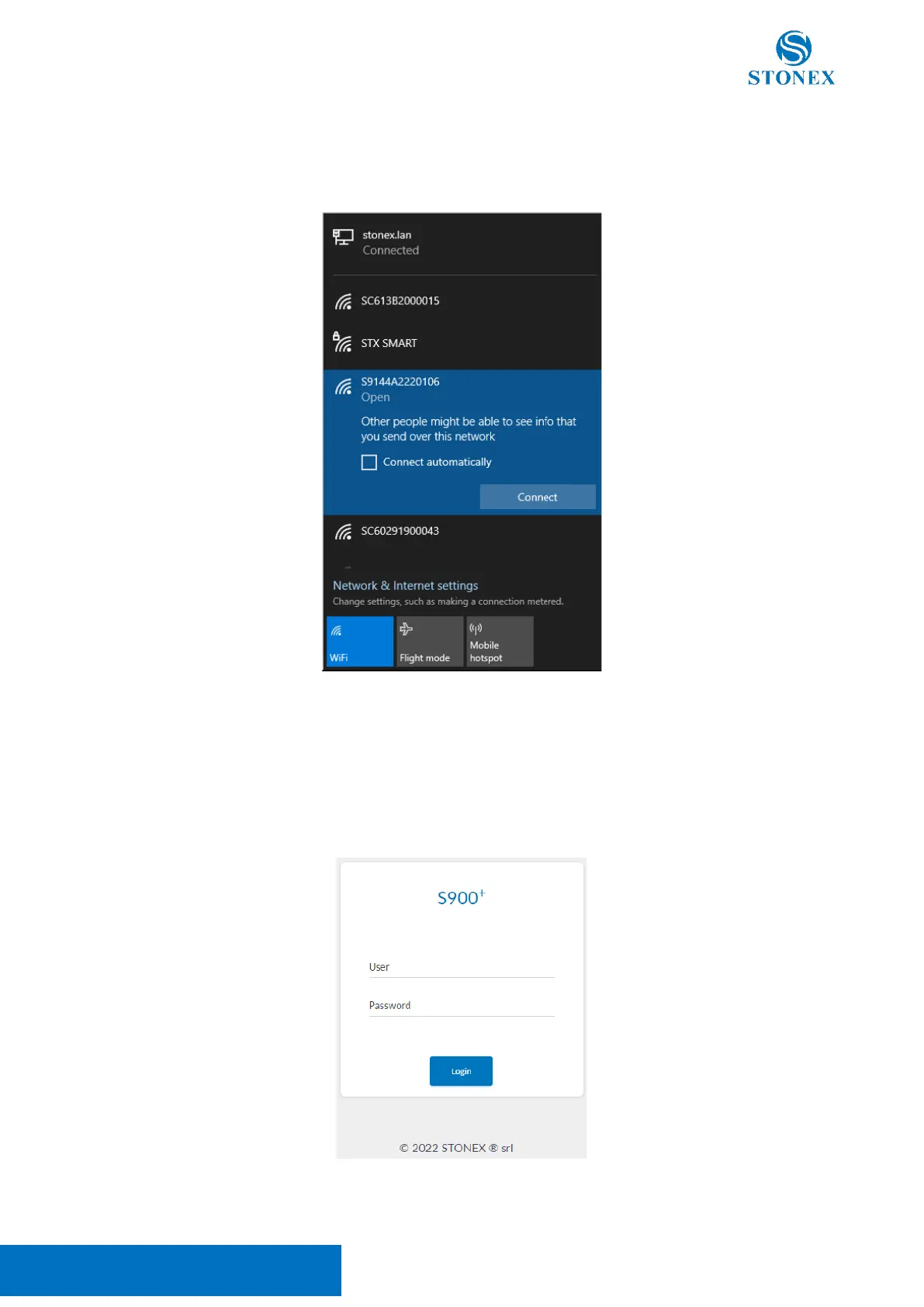 hotspot. The name of the Stonex GNSS receiver hotspot is the receiver serial number.