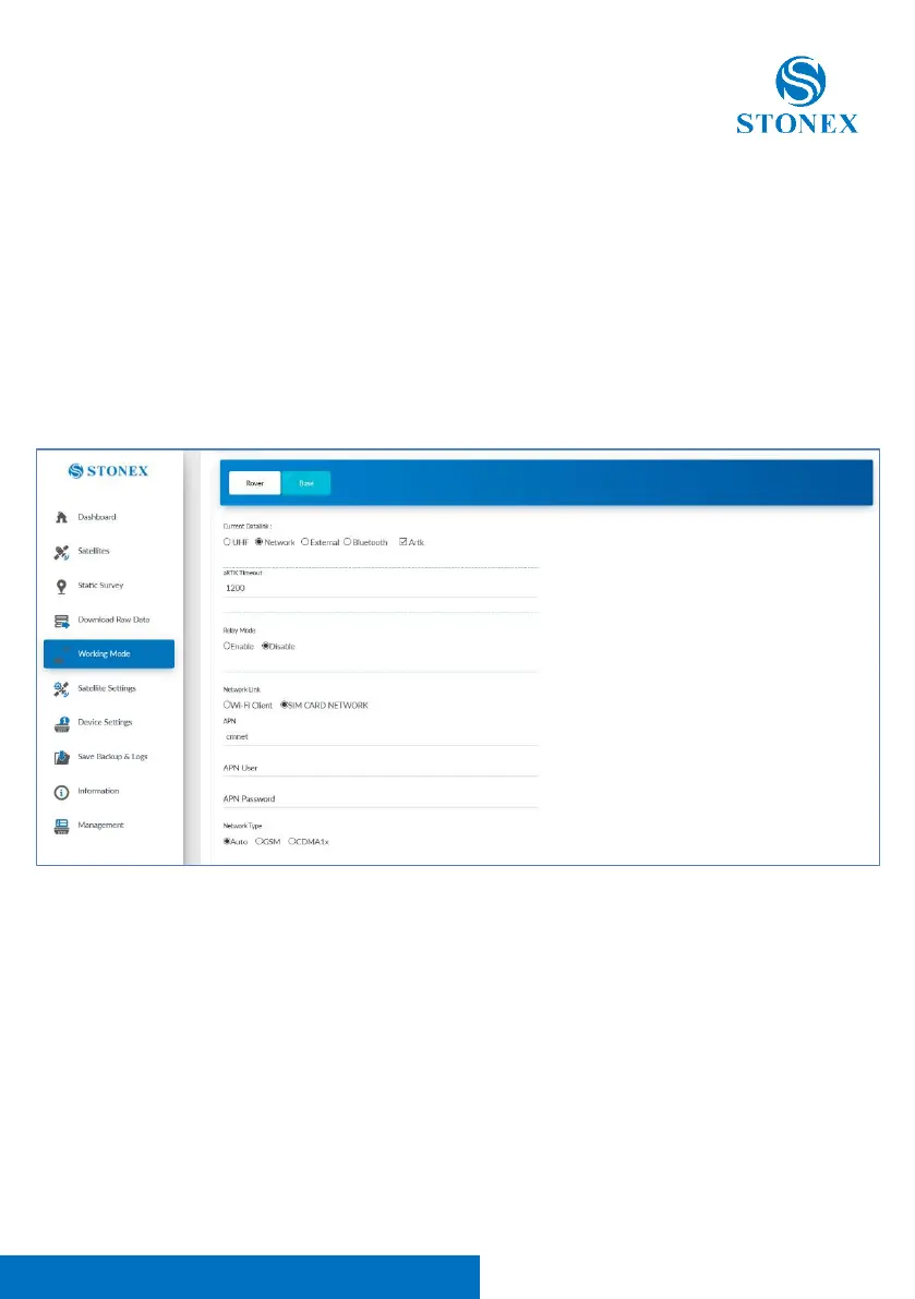 and the respective User and Password if it used a NTRIP connection. Through