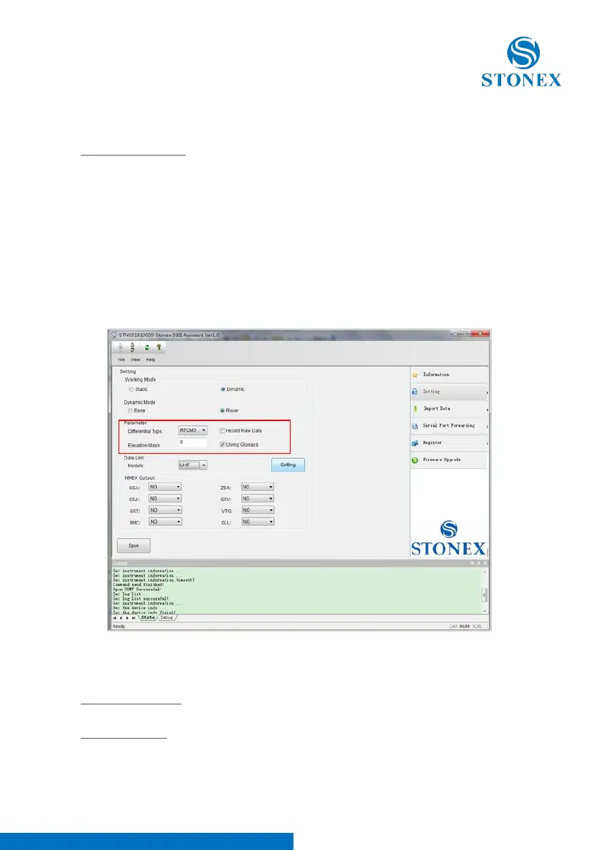 In the Dynamic working mode (Rover or Base) the following parameters should