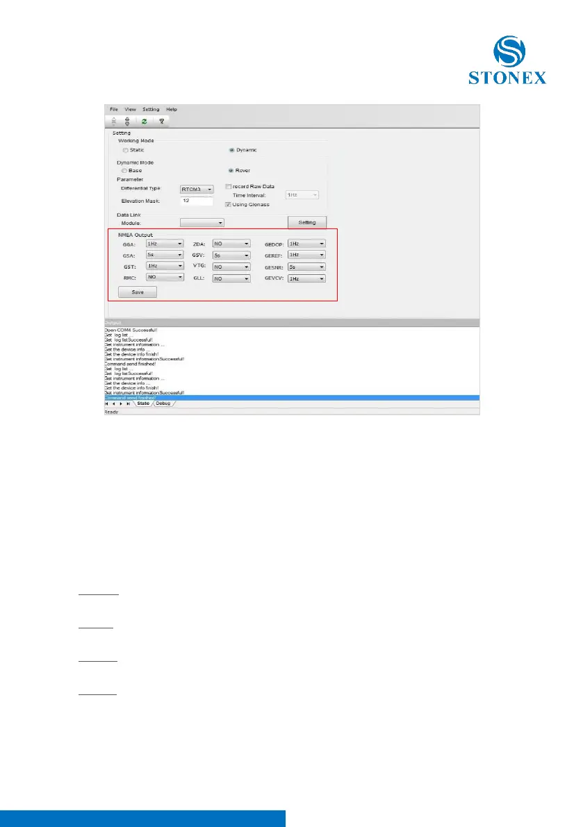different string. You can select the following NMEA strings: GGA, GSA, GST,
