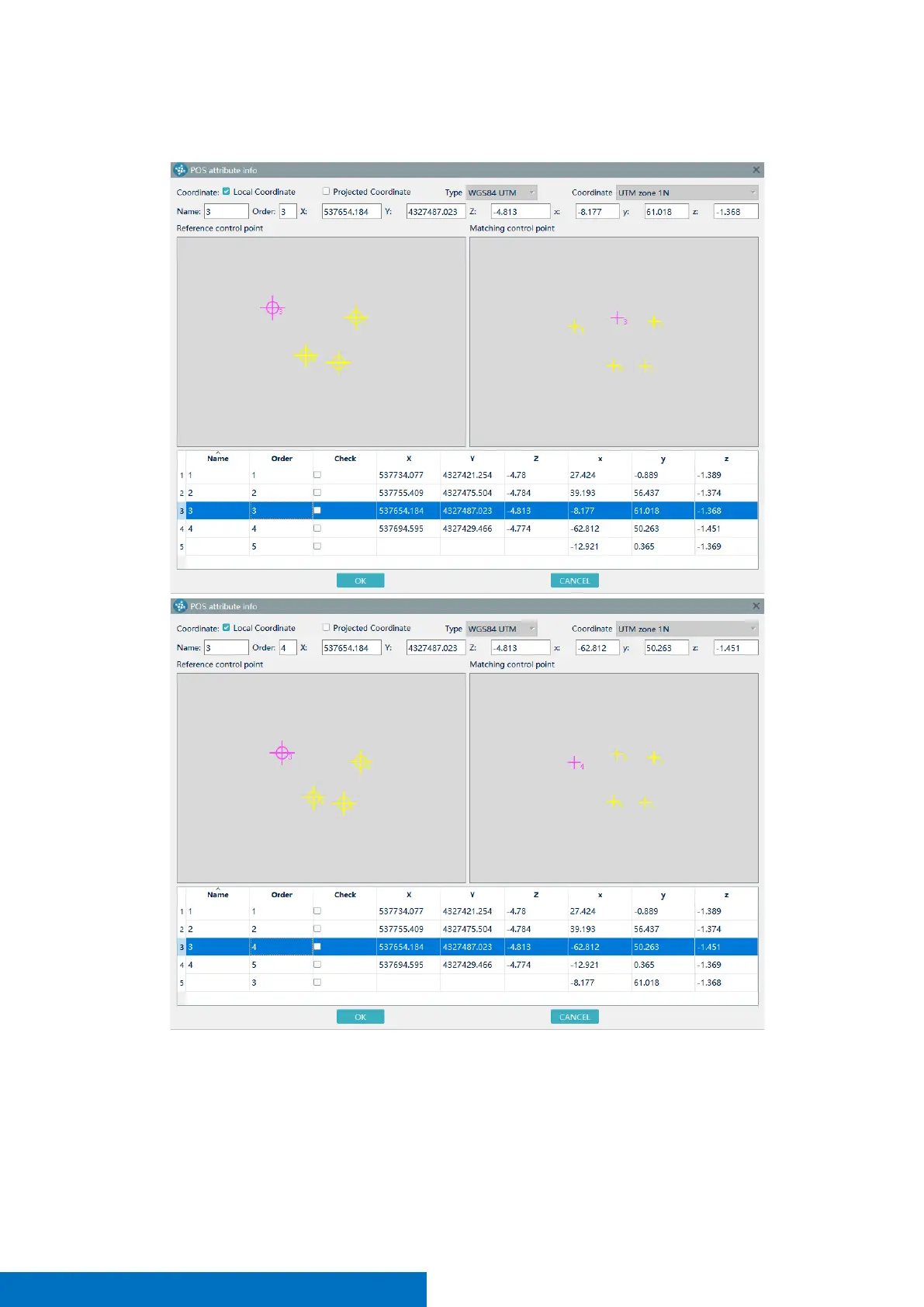 CASE 2: the number of matching points is less than the imported control point, user needs to edit the control