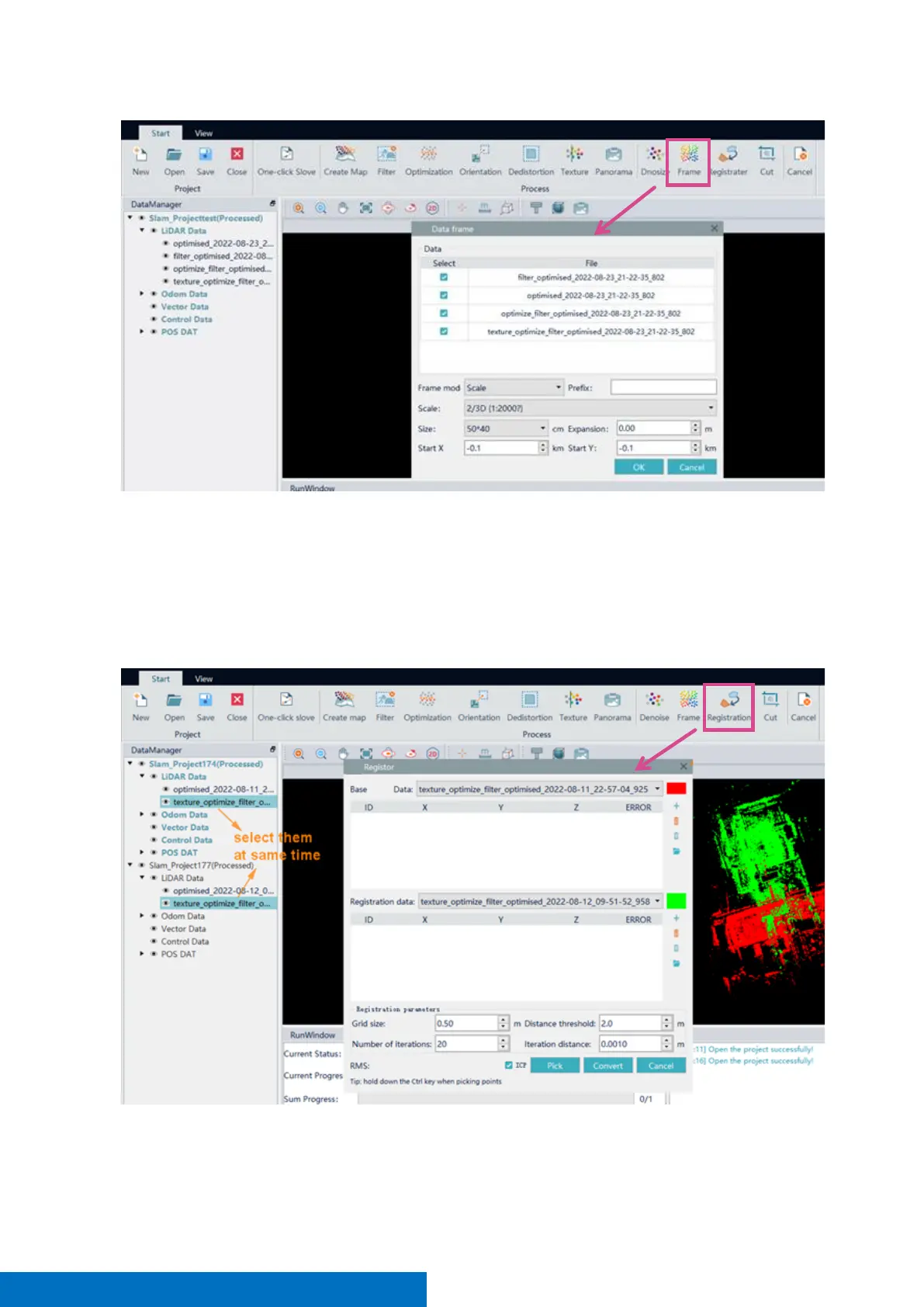 • Select basic point cloud and registered point cloud at the same time, then click Registration