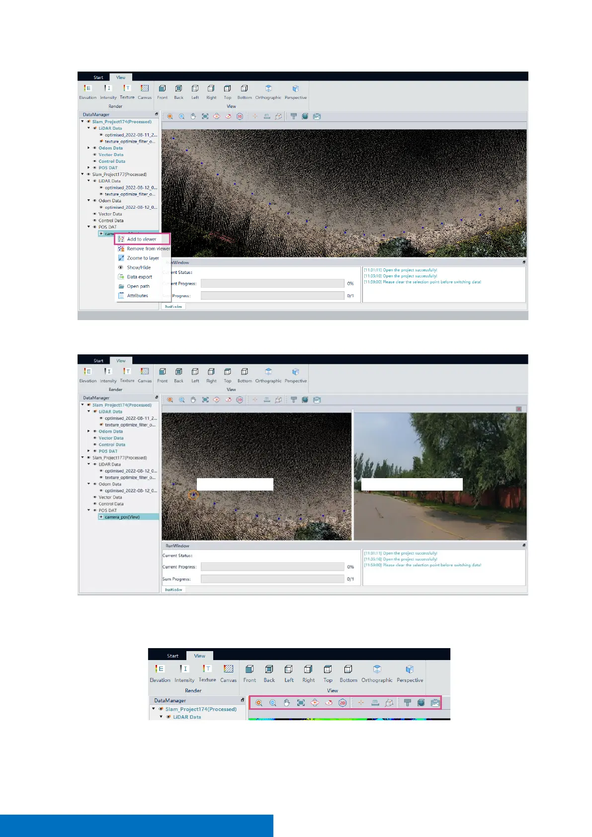 Select the cam_pos and right-click - Add to View. The point in blue is the odometer trajectory. Hold down the