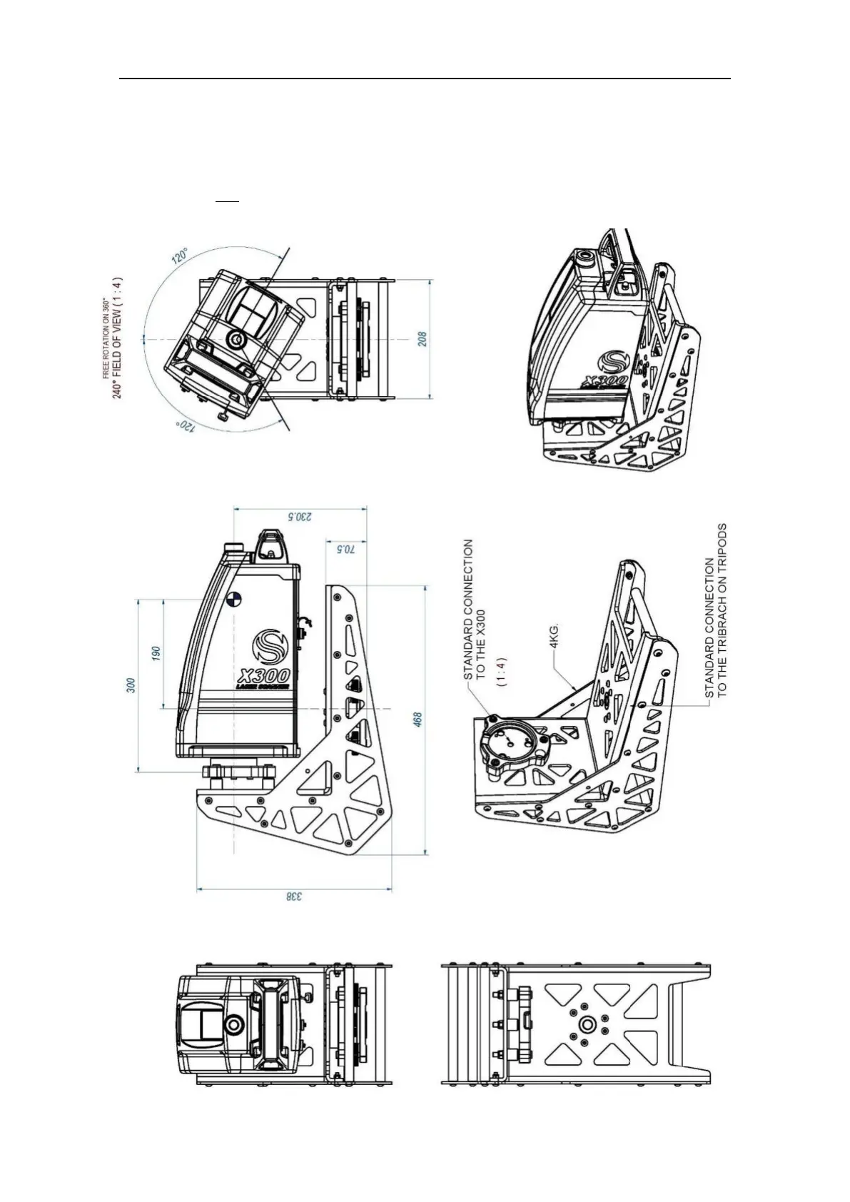 STONEX X300 - 3.3.6 X300 Framework Offsets (Optional Accessory); Framework Compatibility and Dimensions