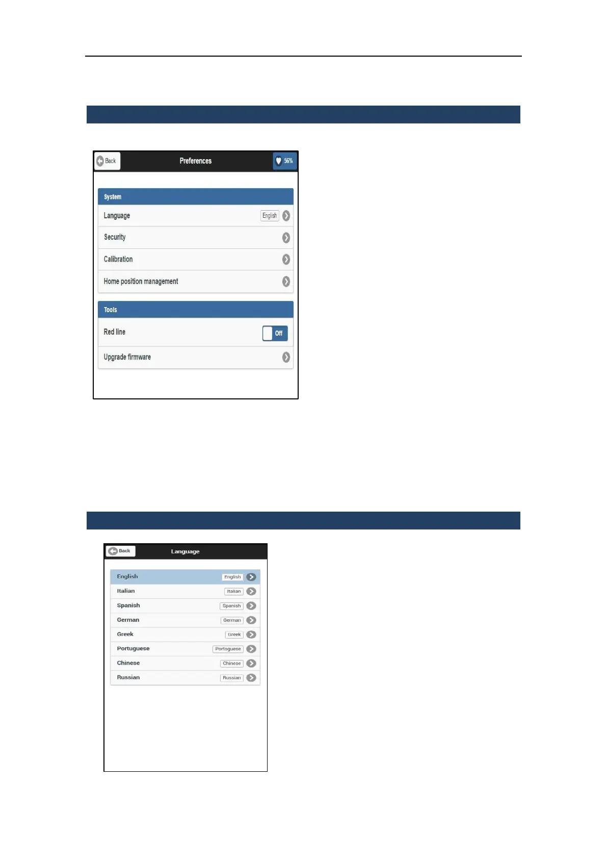 From this menu it is possible to change the