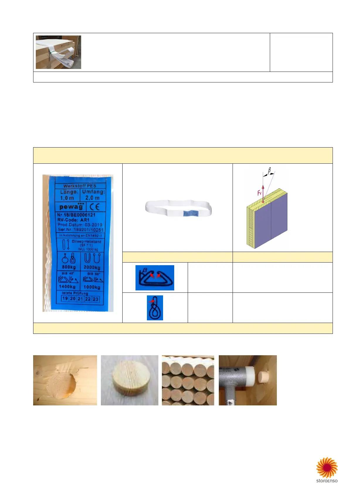 The standard lifting method must be “Basket”. The sling is pre-mounted and delivered this way by Stora Enso and it is not allowed to