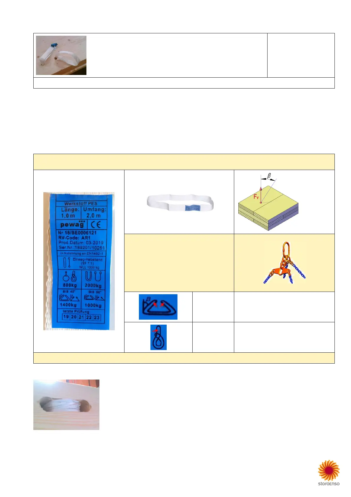 The standard lifting method must be “Basket”. The sling is pre-mounted and delivered this way by Stora Enso and it is not allowed to
