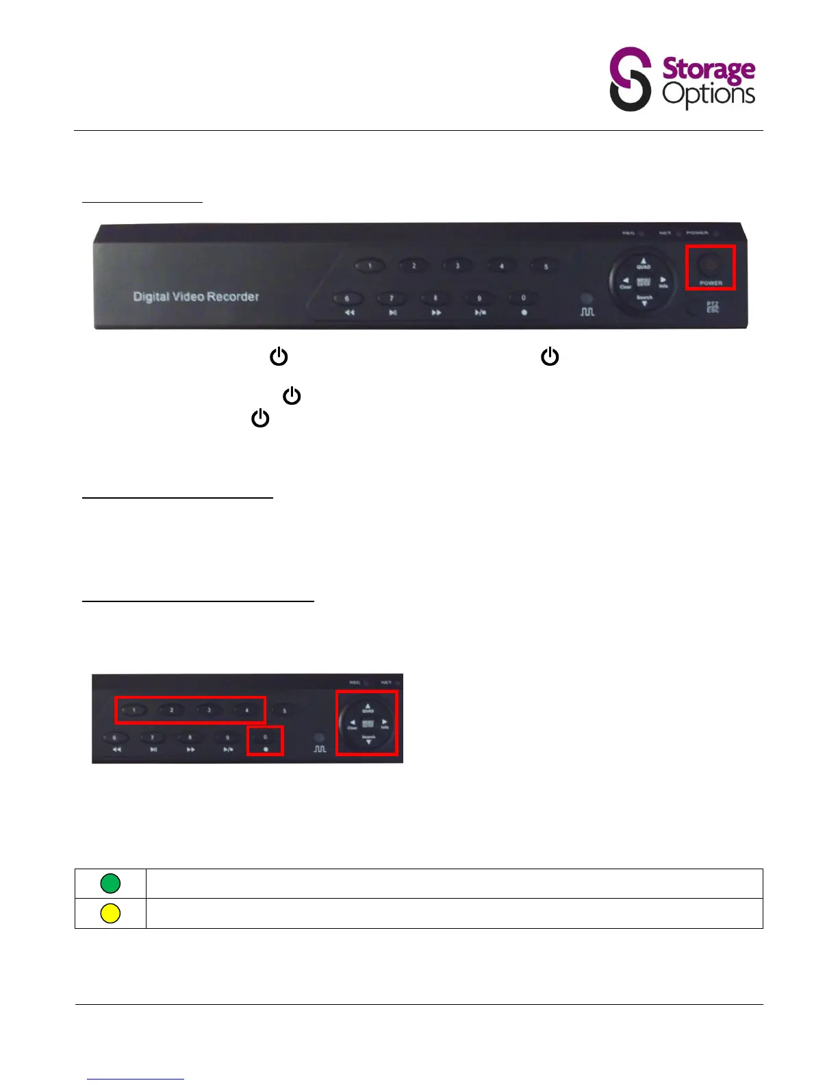 To power on the DVR, press the button once on the main unit, or press the button on the remote control.