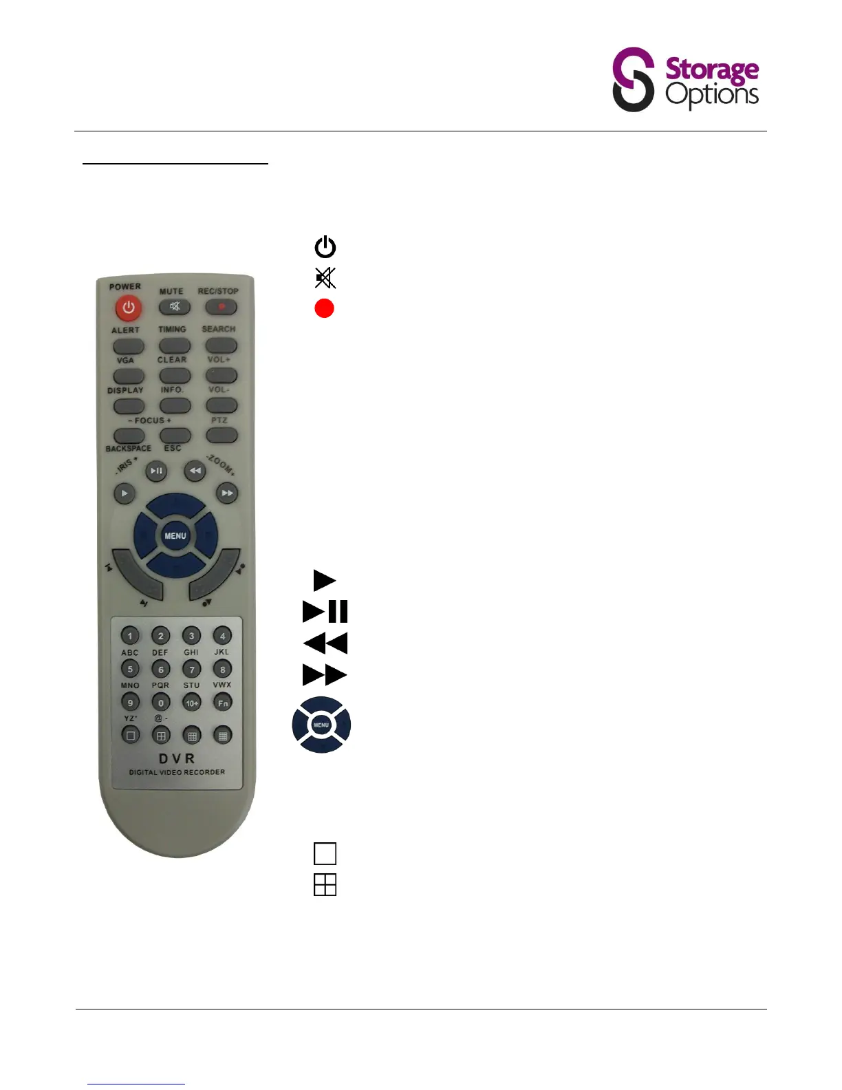 The remote control provides easy access to a variety of commands on the DVR system. Please insert 2x AAA