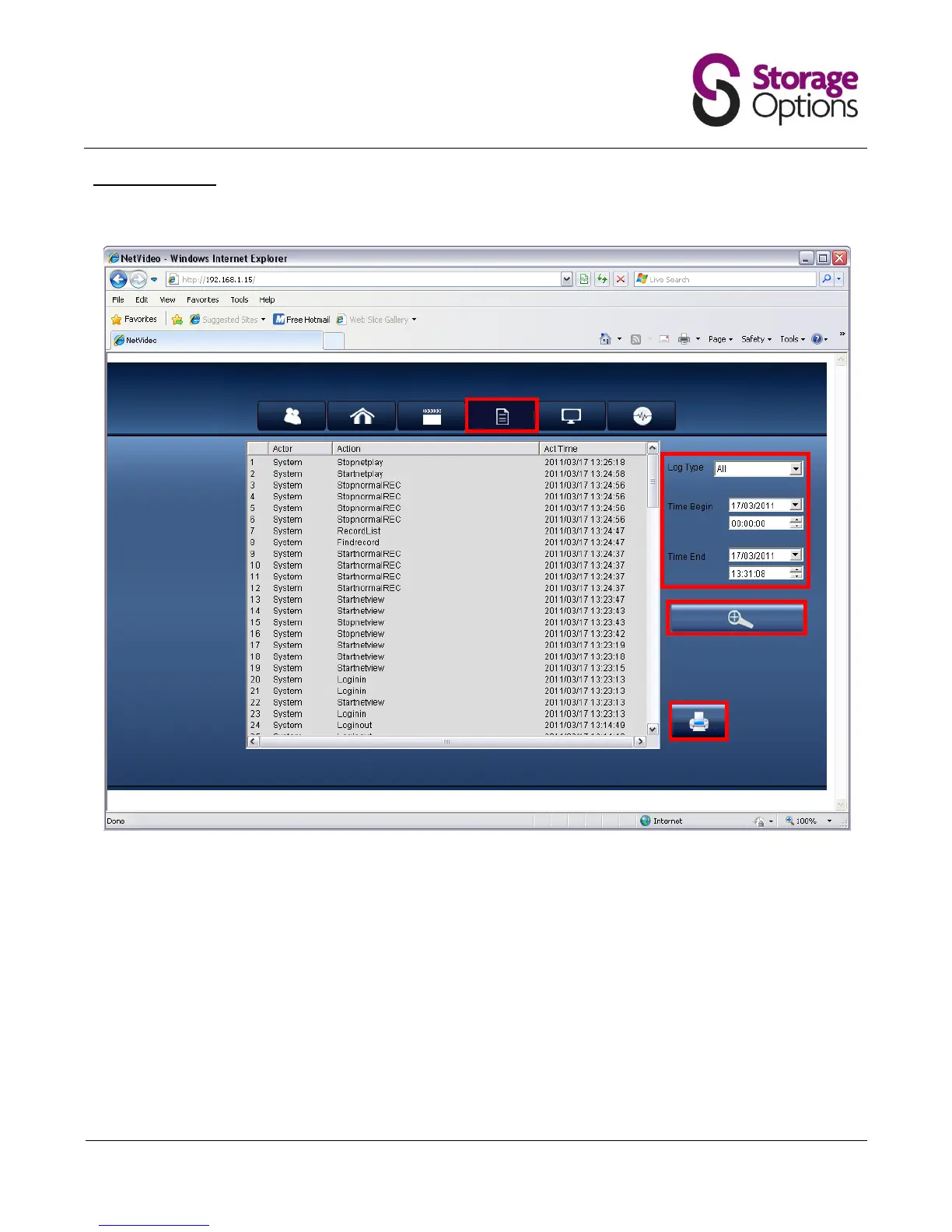 Storage Options CCTV SECURITY SYSTEM - 6.4 - Viewing Logs