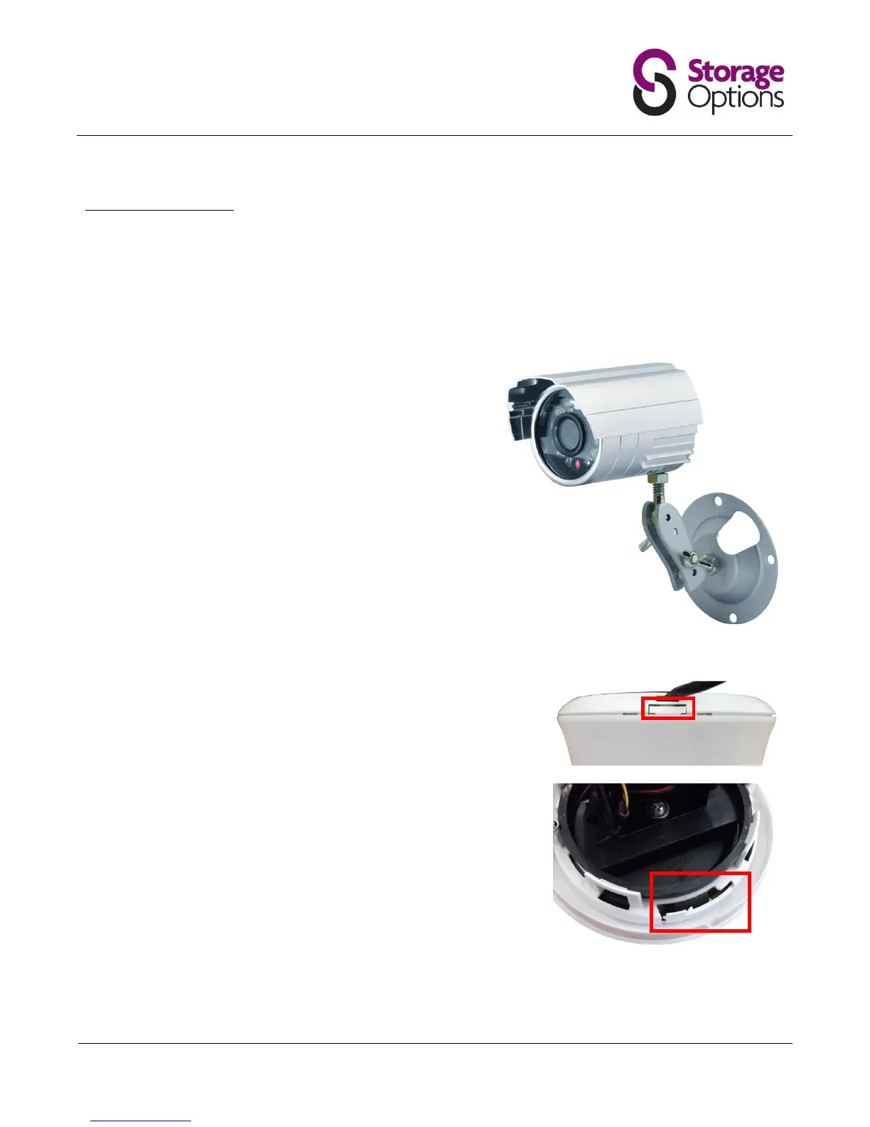 The cameras are supplied with mounting kits for attaching to a wall. Before you affix the cameras in position, please