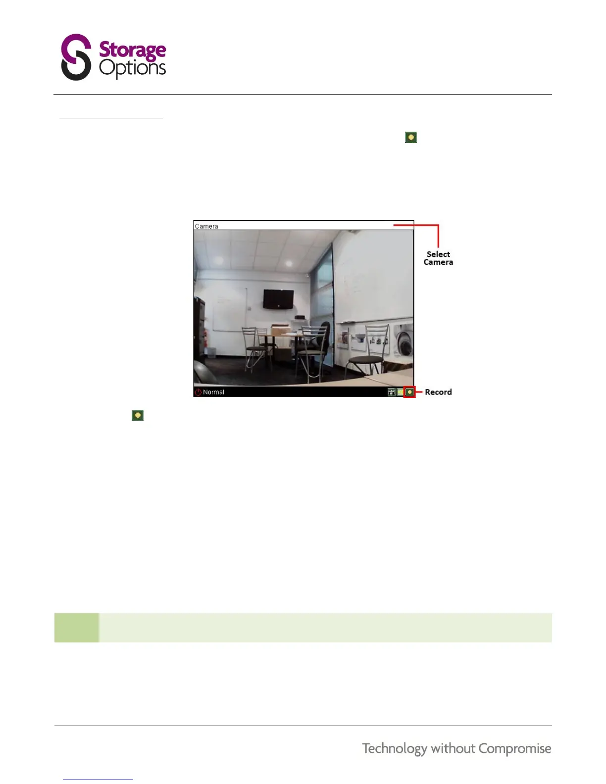 1. Select the camera you wish to record by clicking on the title above the video window. It will switch from