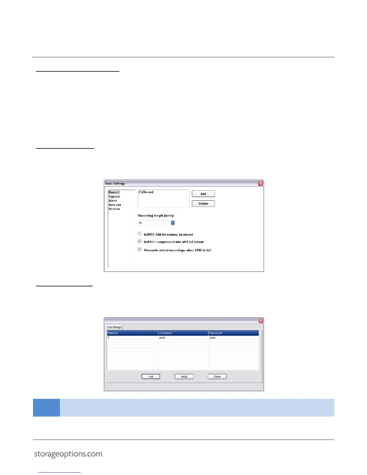 The User Settings menu allows you to control user accounts for the IP Camera Client software. You can add, modify,