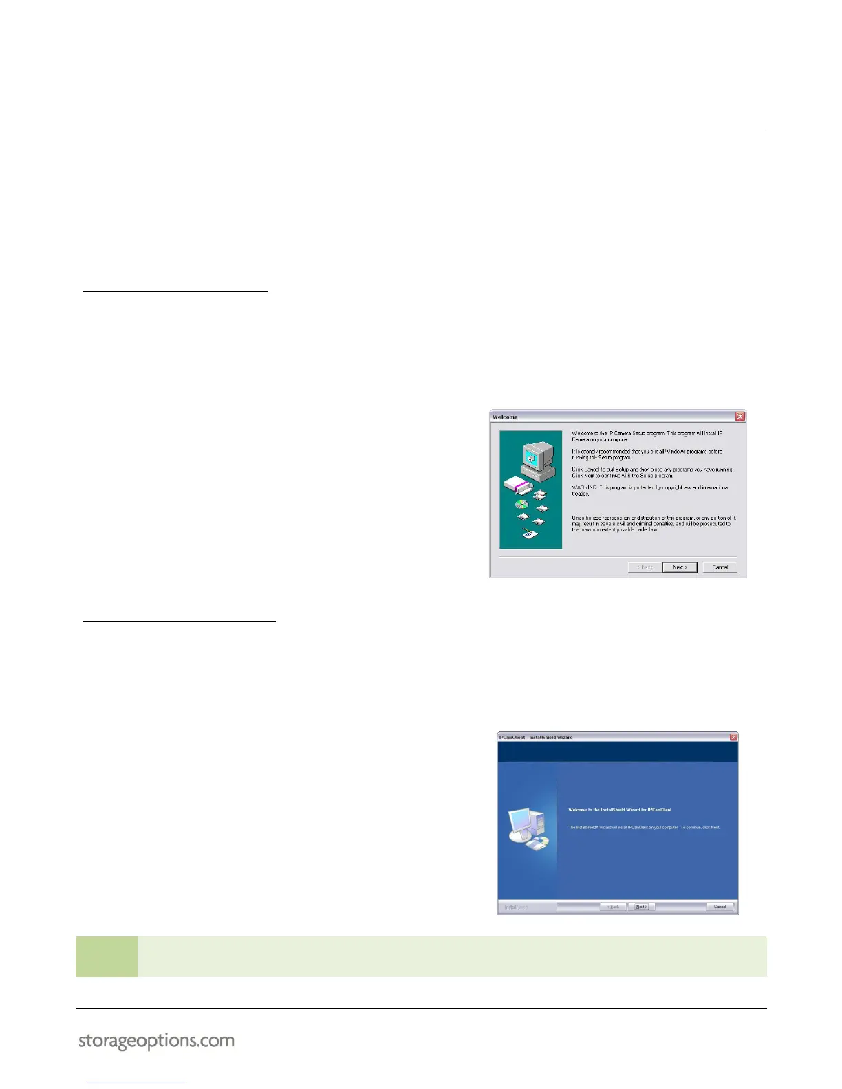 The Storage Options IP Camera is supplied with a CD which features two pieces of software: