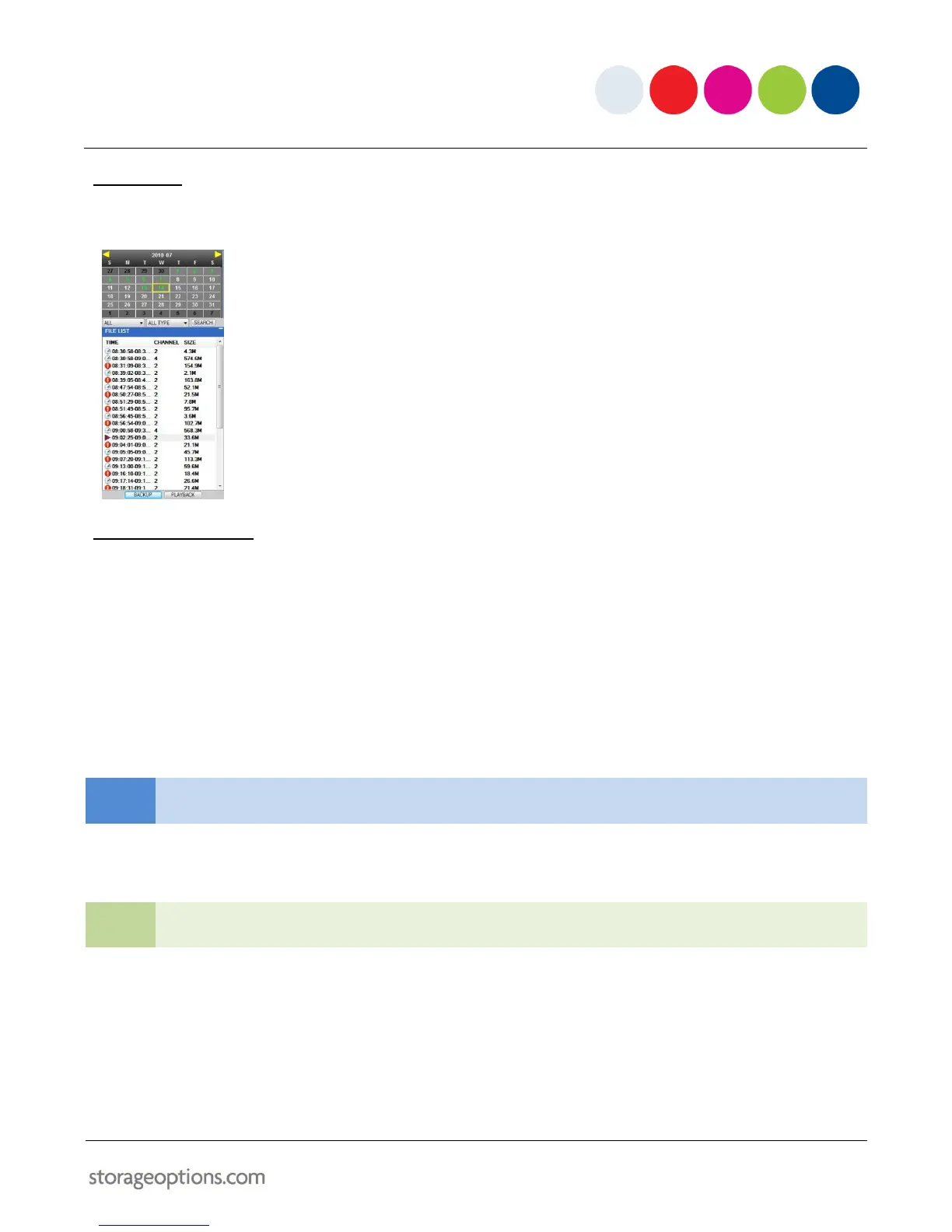 Use the calendar and drop-down menus to search for recorded video on your system.