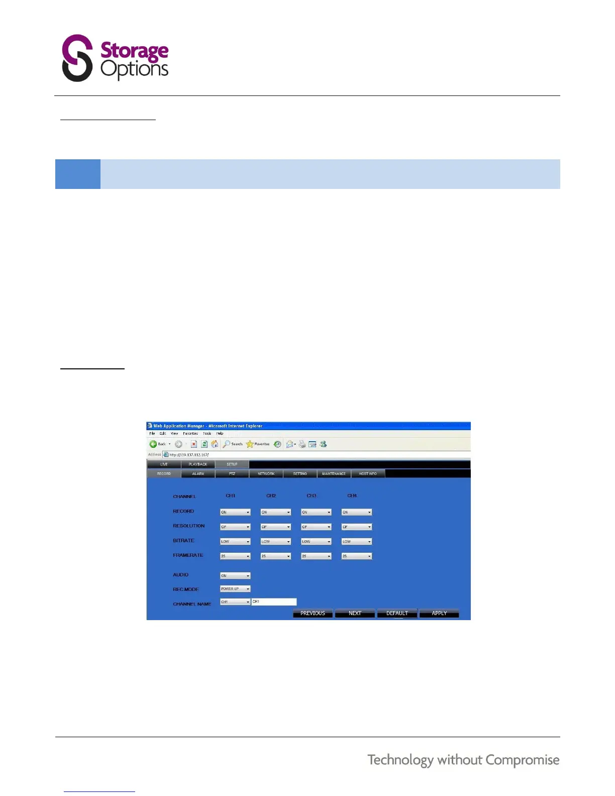 Click RECORD to access the setup interface and check or change settings in a similar manner to using the Graphical