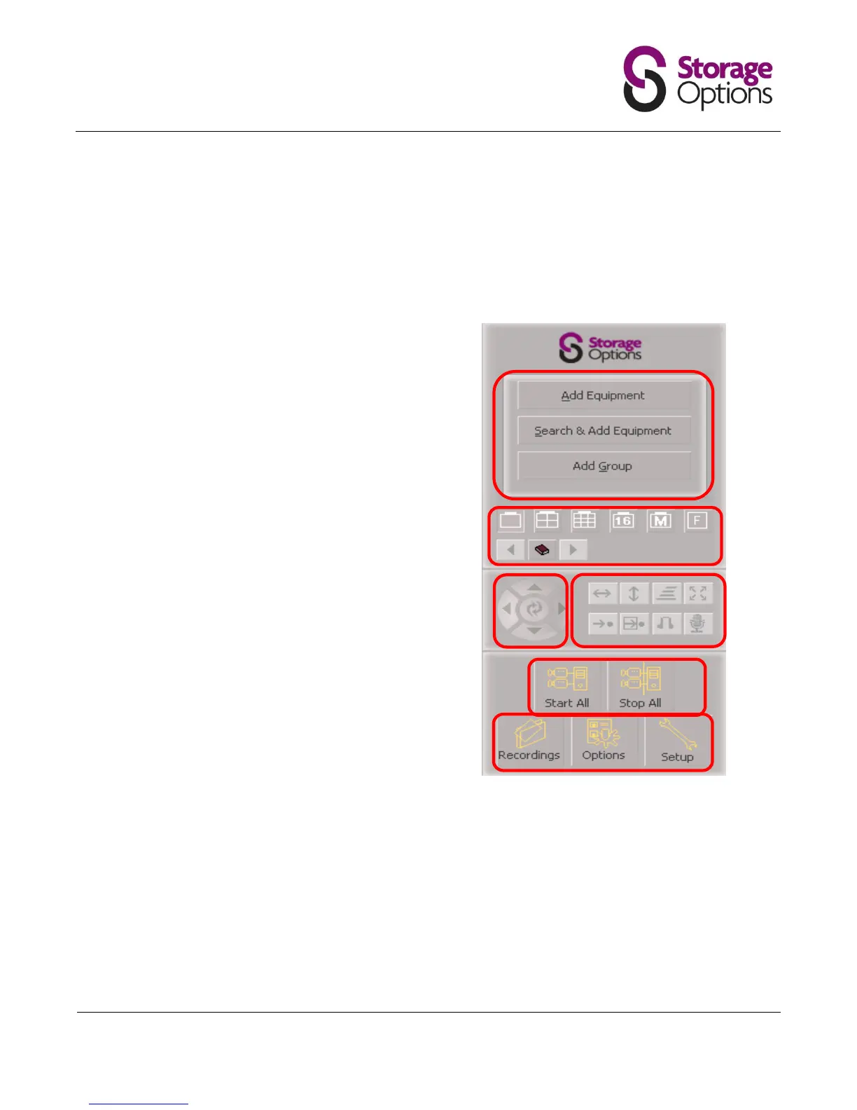 The Storage Options IP Camera Manager control interface is divided into 6 distinct sections. Each of these