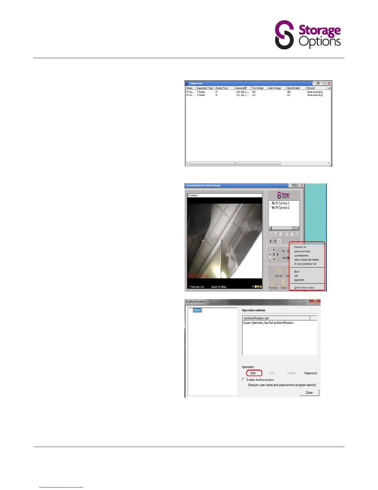 Storage Options IP Night/Day Camera - User Equipment List; User Account Setup