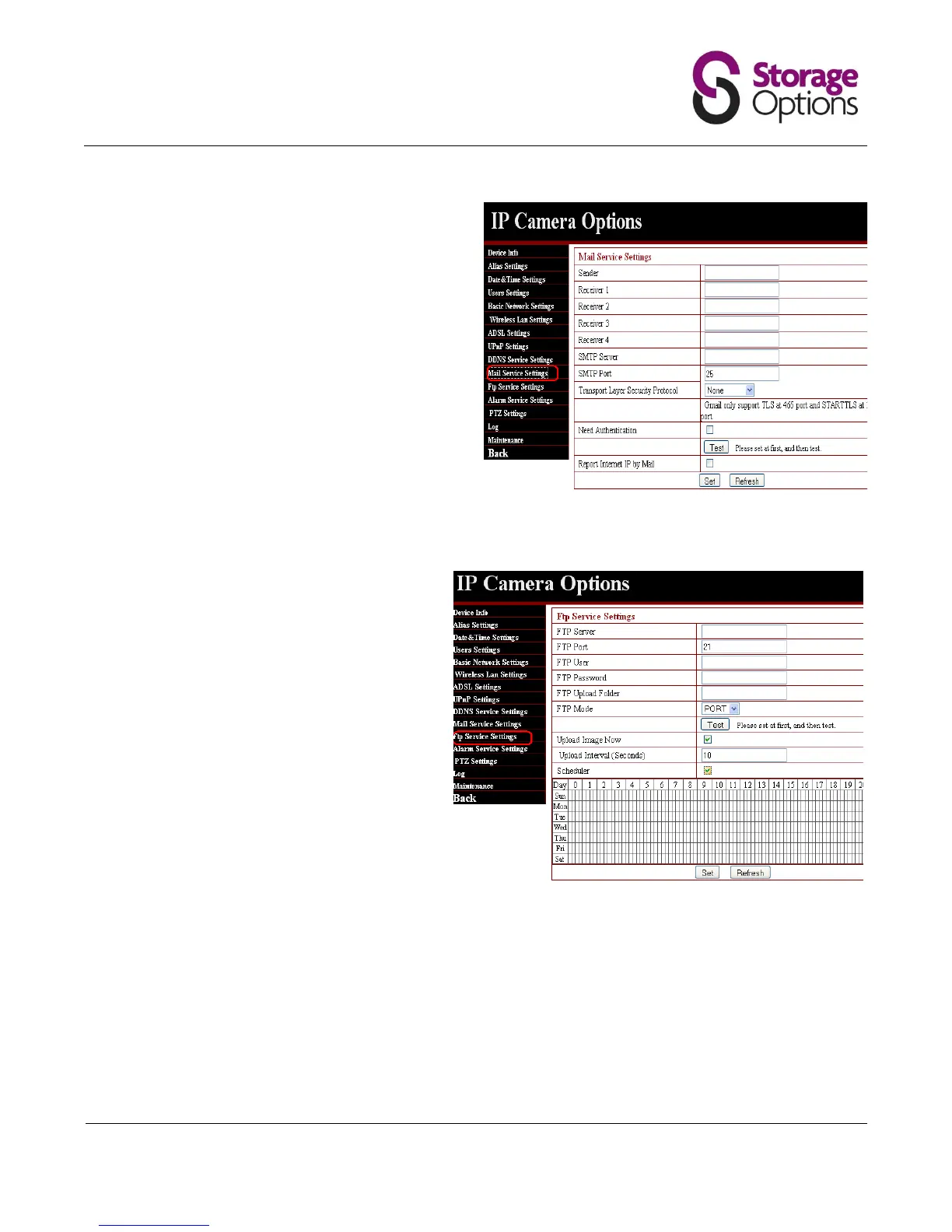 Storage Options IP Night/Day Camera - Mail Service Settings; FTP Service Settings