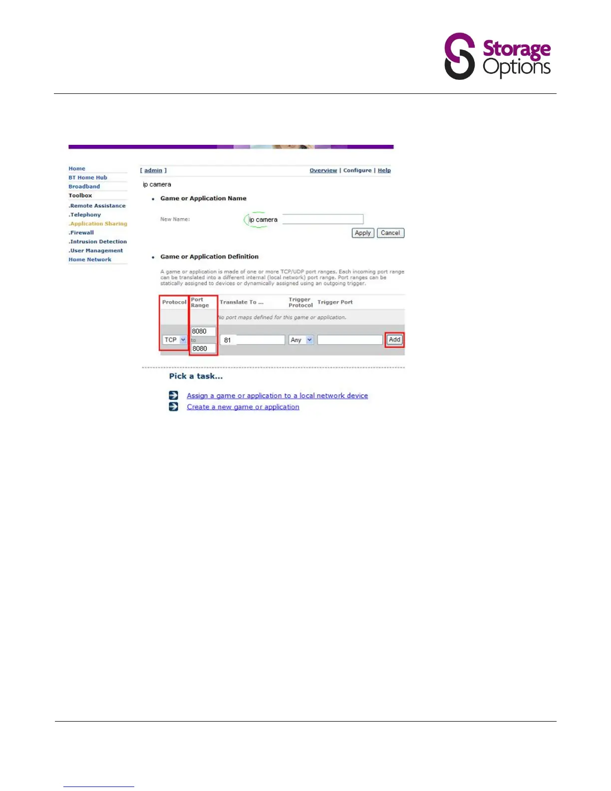 Click “Create a new game or application”. We are creating a port forwarding rule to come in on 8080 and translate
