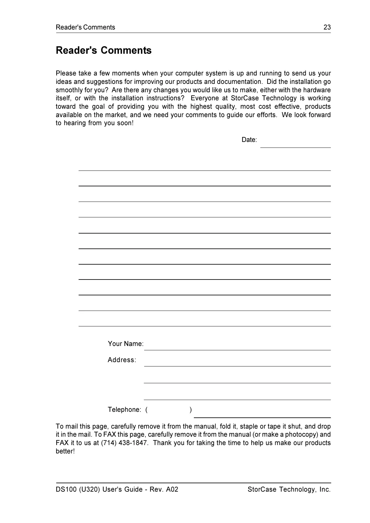 DS100 (U320) User's Guide - Rev. A02 StorCase Technology, Inc.