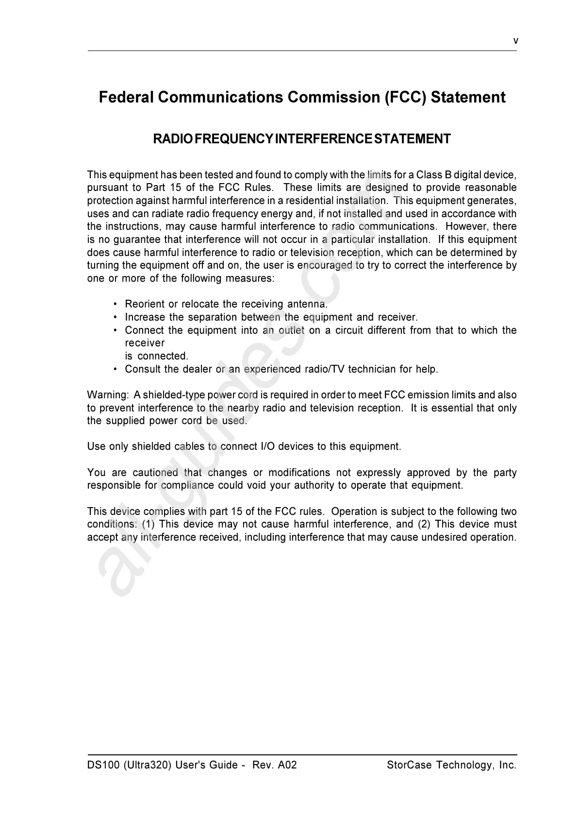 DS100 (Ultra320) User's Guide - Rev. A02 StorCase Technology, Inc.