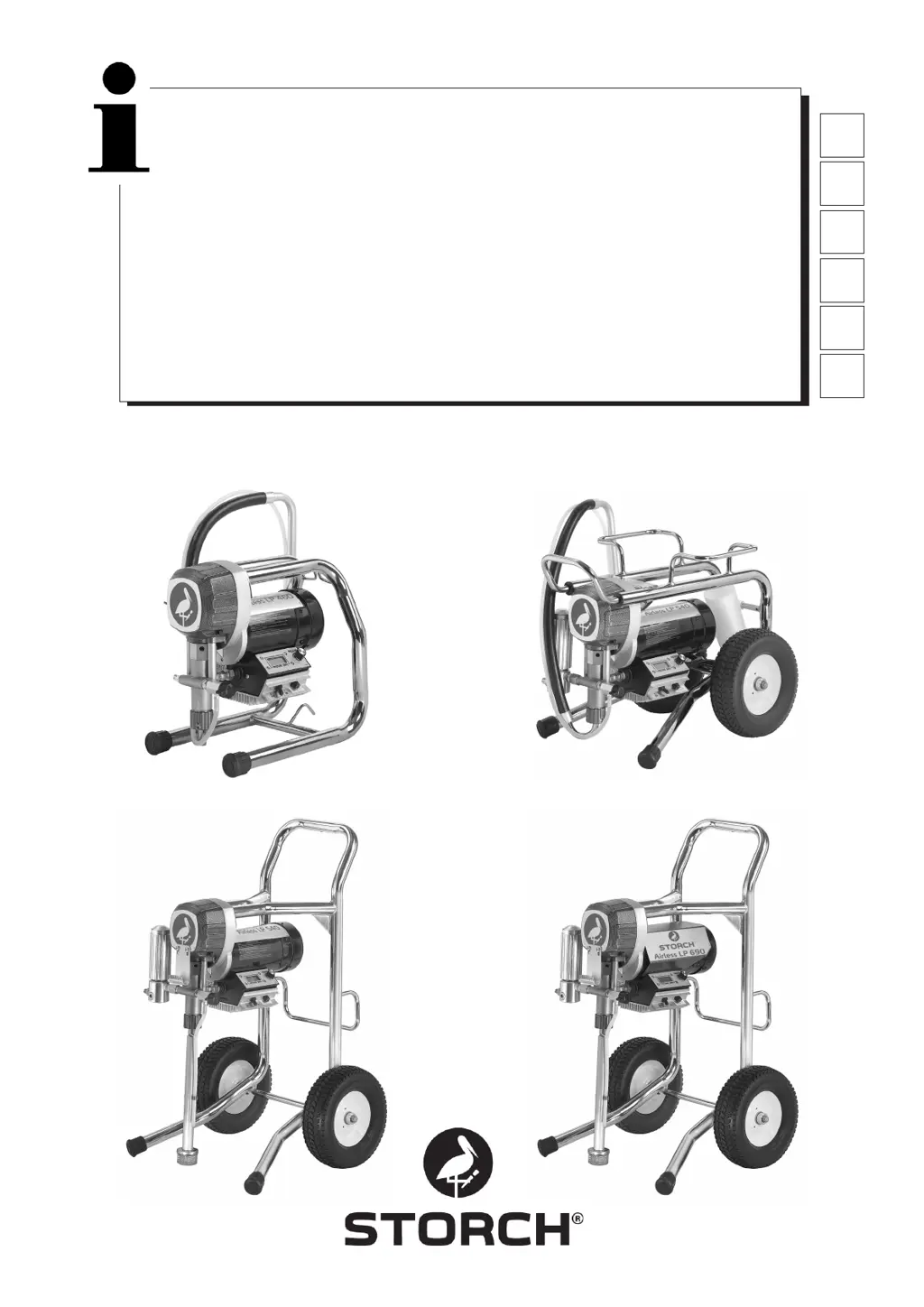 If the Storch Paint Sprayer pump ventilates but builds up virtually no pressure, or insufficient pressure, consider these potential causes: * The pressure might be set too low, so try increasing it. * The filter could be clogged; clean the gun filter, inlet filter, or device filter, or replace them as necessary. * The outlet valve may be jammed or worn; maintain the outlet valve. * The ventilation/pressure relief valve could be bypassed; clean or replace it. * The packings and/or piston might be worn; tighten the gland nut, replace the packing, and if needed, the piston.