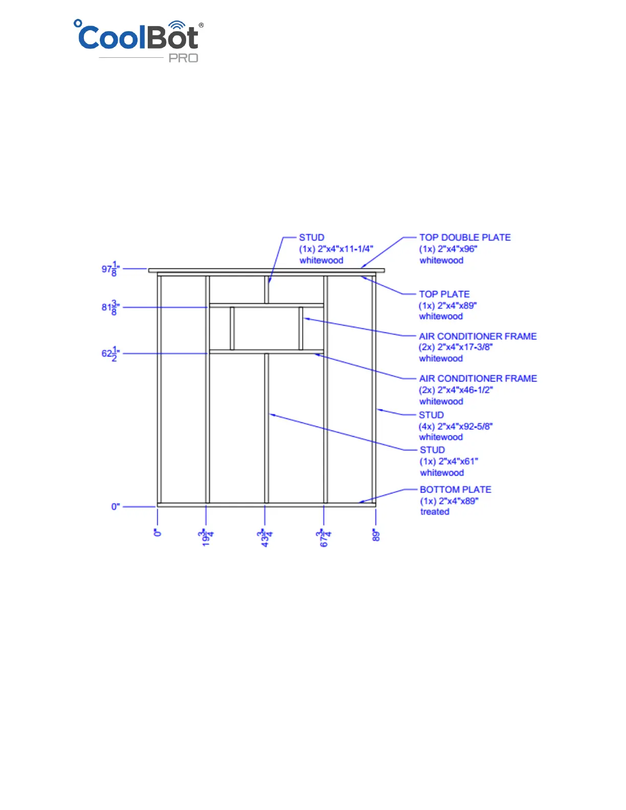 Treated lumber is used for the BOTTOM PLATE since the BOTTOM PLATE may be mounted to the