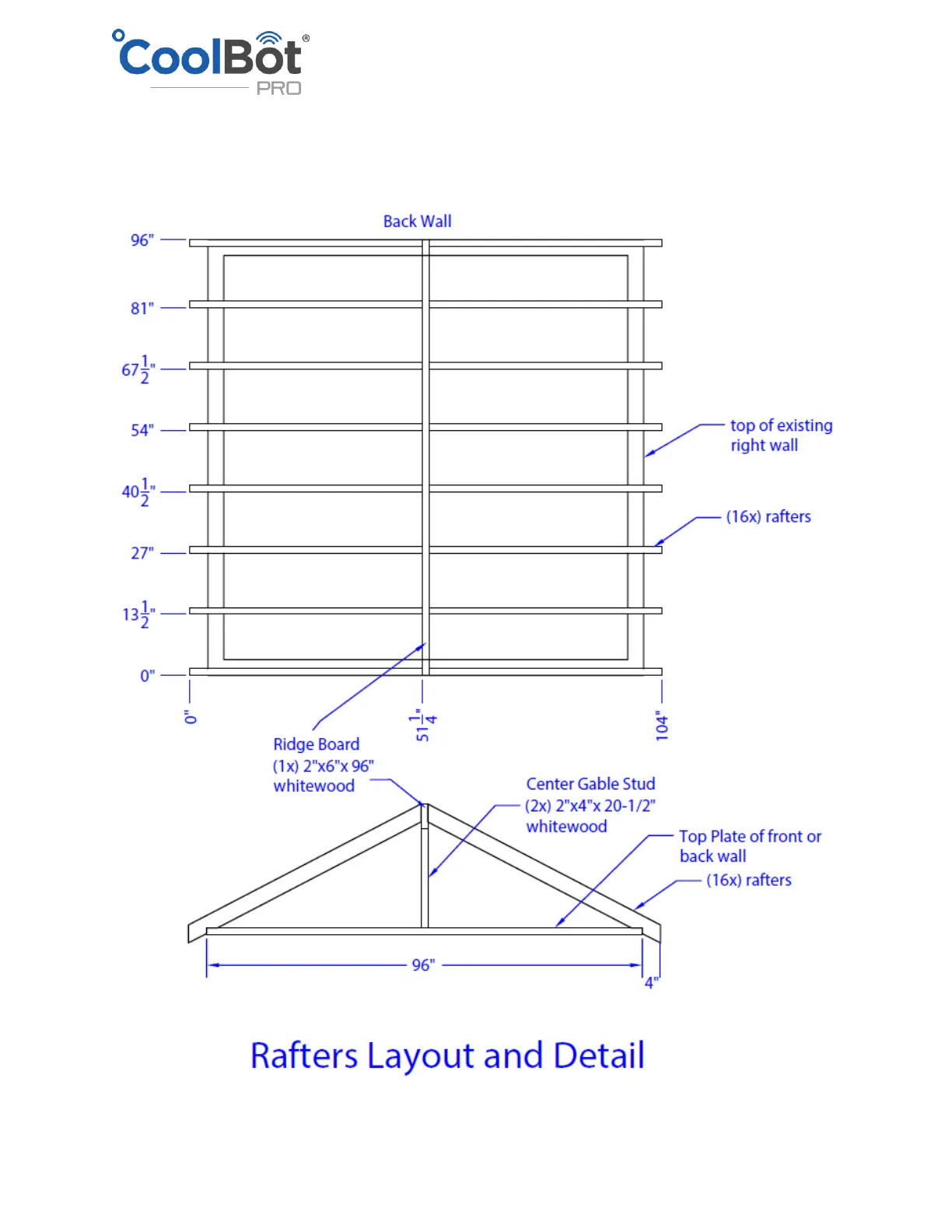 determine the measurements of rafters, ridge-board, center gable stud and rafter overhang.