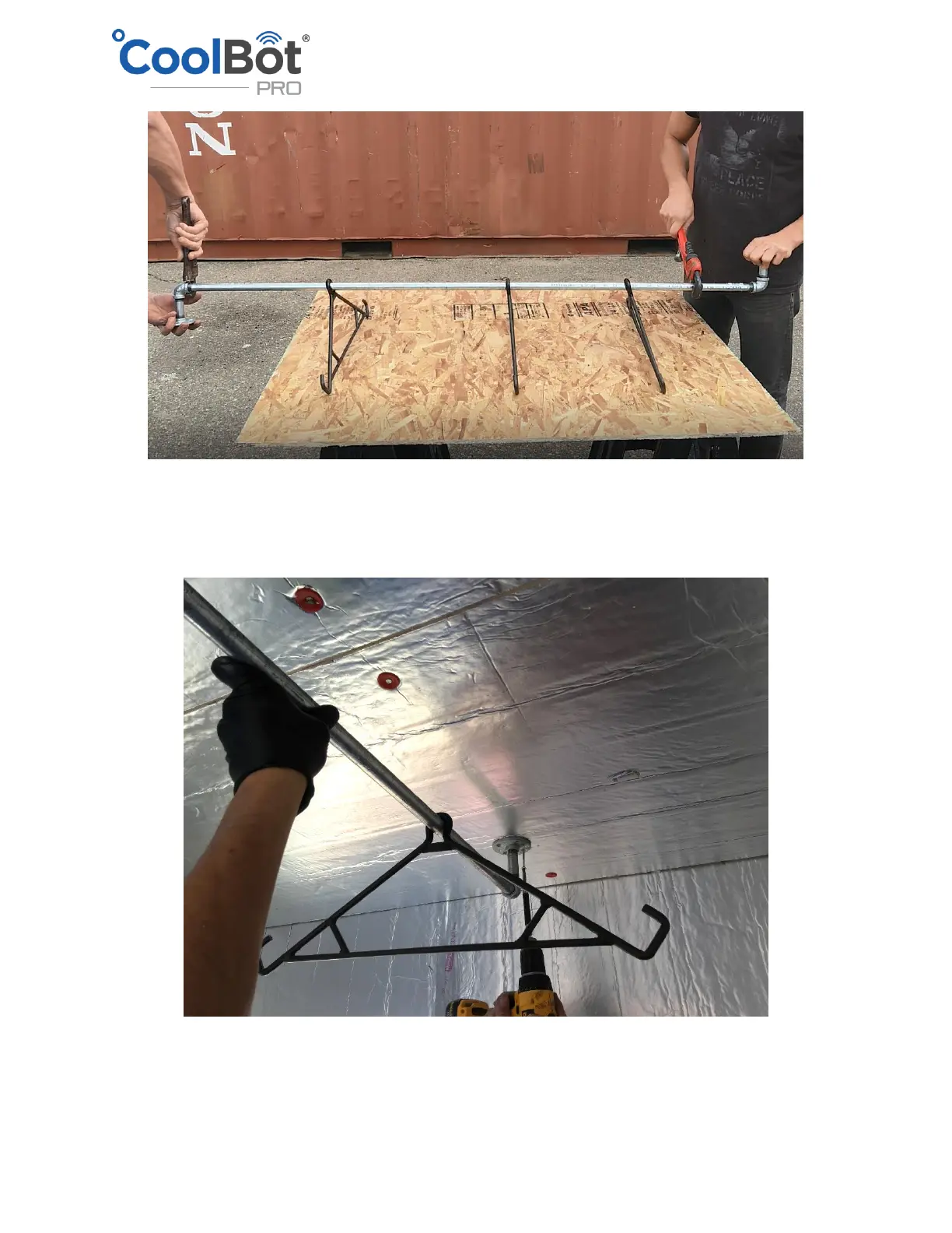 • Center the pipe style ceiling hangers front to back in the cooler and mount them to the double